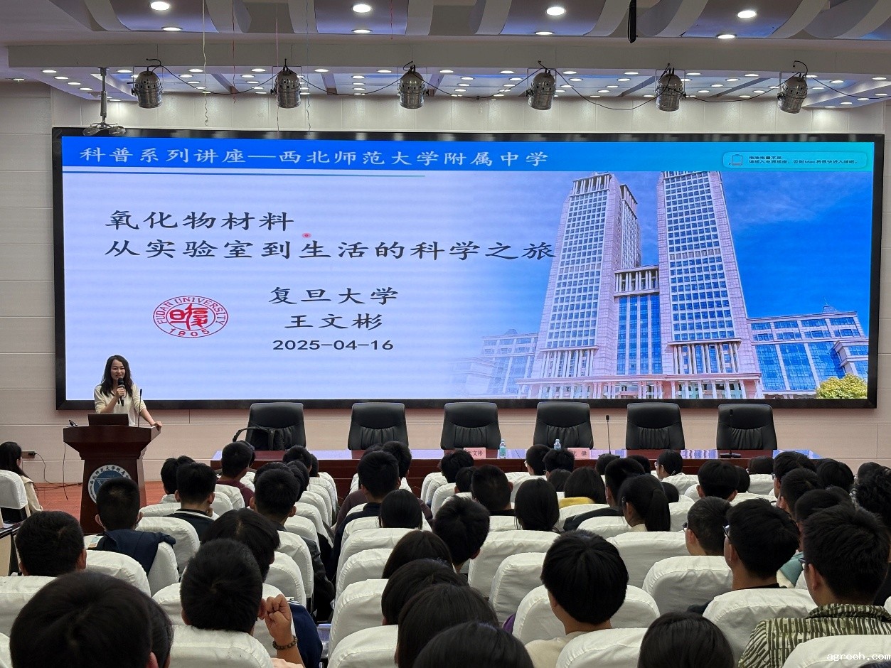图-2王文彬研究员在西北师大附中做“氧化物材料:从实验室到生活的科学之旅”的报告